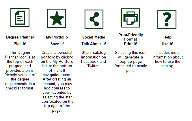 Powered by Acalog™, the online catalog management system contains several helpful features to assist you: